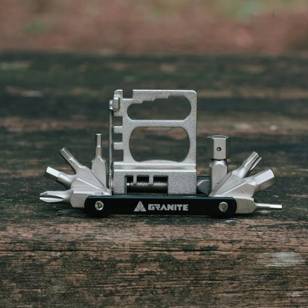 Granite Diverse 20 łączy maksymalną funkcjonalność w imponująco smukłej obudowie – zaledwie 11 mm grubości. To ultrakompaktowe narzędzie wielofunkcyjne, ważące zaledwie 104 g, zostało stworzone dla rowerzystów, którzy oczekują wszechstronności bez pokaźnych gabarytów. Z 20 niezbędnymi funkcjami – w tym bitami imbusowymi (2 do 8 mm), T25, wkrętakiem PH2, skuwaczem łańcucha i hakiem, kluczami do szprych, kluczami nasadowymi, a nawet otwieraczem do butelek – to kompleksowe rozwiązanie do napraw na szlaku i regulacji w trakcie jazdy.