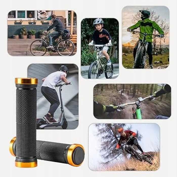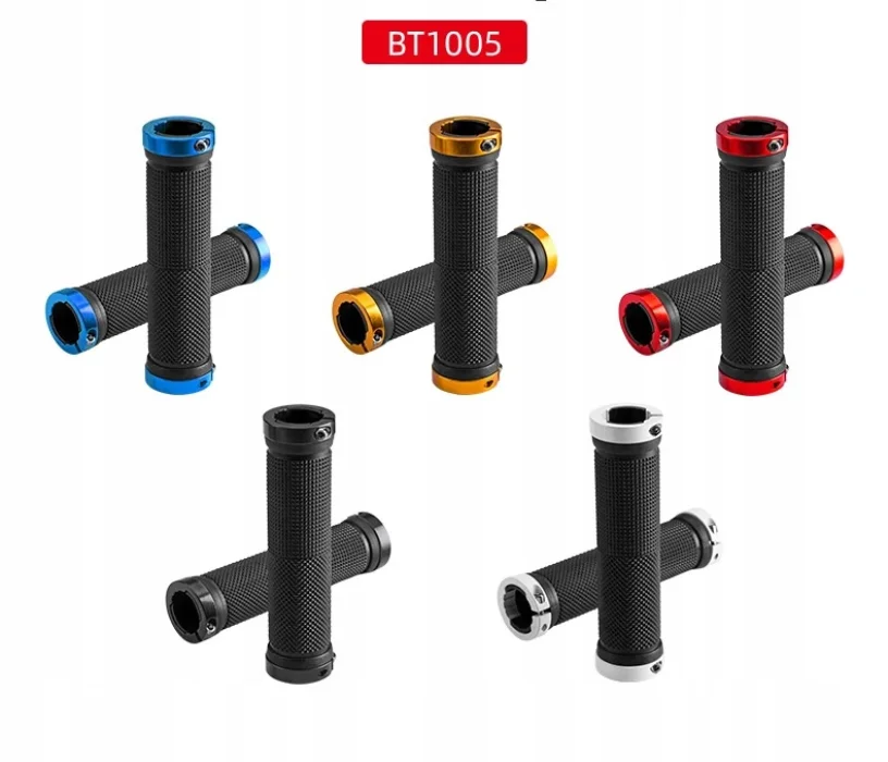 Anatomicznie dopasowane chwyty kierownicy wykonane z gumy dla uzyskania unikalnego uczucia miękkości, przy jednoczesnym utrzymaniu trwałości. Unikalny wzór powierzchni chwytów oraz zapewniają wygodną pozycję, absorpcję wstrząsów oraz pewność chwytu. Wyposażone w aluminiowe skręcane klamry oraz korki.