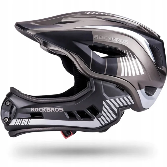 - Cechy dodatkowe: kask full face z możliwością odpięcia osłony szczęki, odpinana wyściółka, pokrętło regulacji 360°
