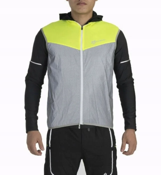 Niemal cały przód kamizelki i boki wykonane z odblaskowego materiału pokrytego drobnymi otworami dla lepszej oddychalności. Pozostała część kamizelki wykonana z elastycznego poliestru.