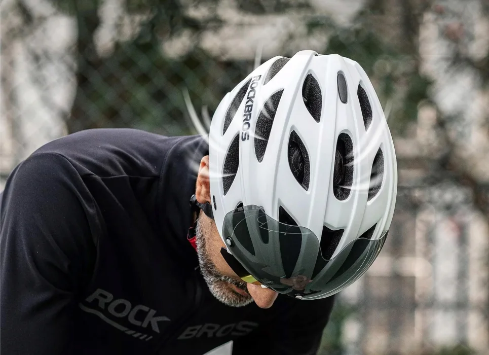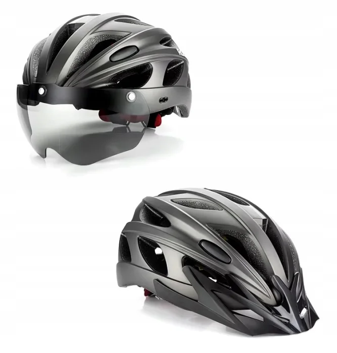 Kask rowerowy to przenośny, lekki kask rowerowy wyposażony w zdejmowaną osłonę wizjera i zdejmowaną przezroczystą, przyciemnianą osłonę przeciwsłoneczną, która chroni przed kurzem. Kask jest unisex i pasuje do większości mężczyzn / kobiet. Kółko z zatrzaskiem z tyłu kasku umożliwia regulację w zależności od obwodu głowy w ruchu. Aerodynamiczna konstrukcja i dobra wentylacja zapewniają chłód na głowie.