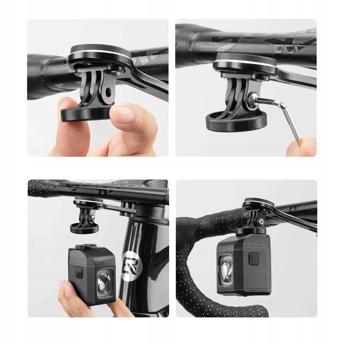 - Obróć przednie światło i zamontuj je na uchwycie