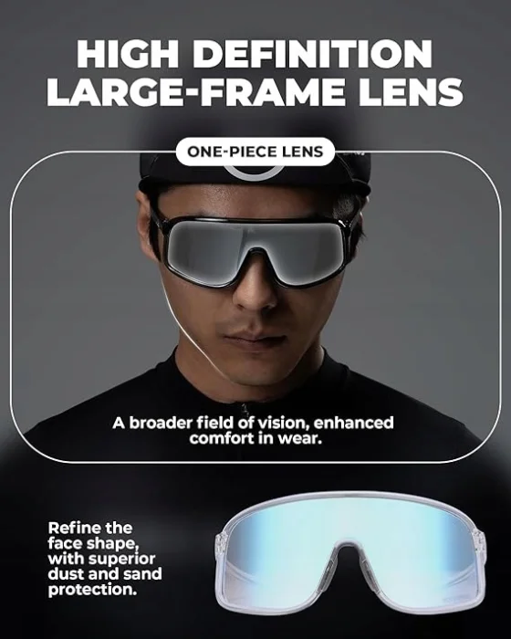 Te okulary przeciwsłoneczne posiadają soczewki PC, które zmieniają kolor z jasnego na ciemny. Przyciemniają się w jasnym świetle słonecznym, aby zmniejszyć odblaski i zmęczenie oczu, a rozjaśniają się w pomieszczeniach lub przy pochmurnej pogodzie, aby zapewnić wystarczającą ilość światła. Ta inteligentna technologia eliminuje konieczność zmiany okularów w zależności od warunków oświetleniowych.