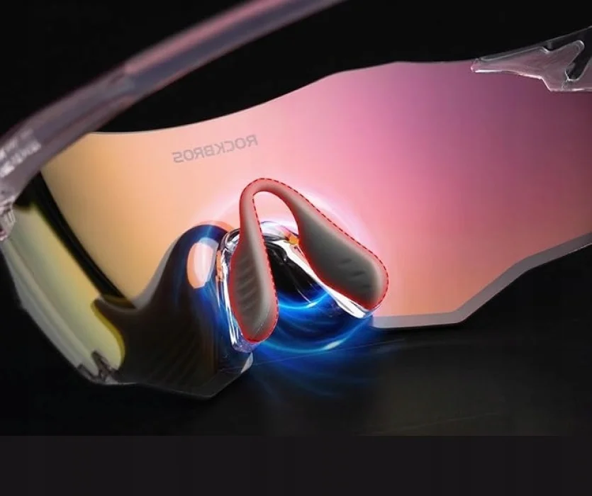 Okulary rowerowe ROCKBROS są wyposażone w dwa wyjmowane noski wykonane z antypoślizgowej gumy, które są łatwe w czyszczeniu i wymianie, zapewniając wygodne dopasowanie.