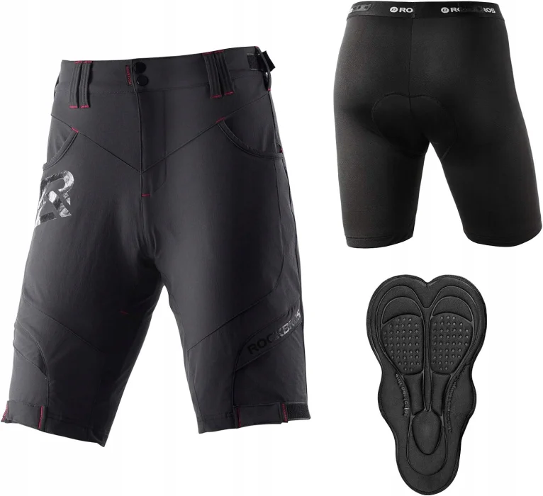 - 【Wyjmowane wkładki ochronne 4D】Wzornictwo 2 w 1, spodenki MTB rowerowe z wyściółką 4D, spodenki rowerowe można szybko zdjąć za pomocą metalowych klamer. Spodnie rowerowe Rockbros wykorzystują gęstą i przepuszczającą powietrze piankę 4D o dużej elastyczności powrotnej; skutecznie likwidują bóle biodrowe.