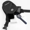 Albo jak tradycyjną „nerkę” przez ramię, albo można ją zamocować w pasie i zaczepić o udo dla jeszcze lepszej stabilizacji. Regulowany pas oraz dołączony dodatkowy pas mocujący na udo umożliwia dostosowanie torby do własnych potrzeb niezależnie od tego czy torba będzie używana podczas jazdy motocyklem czy przy pieszej wędrówce.