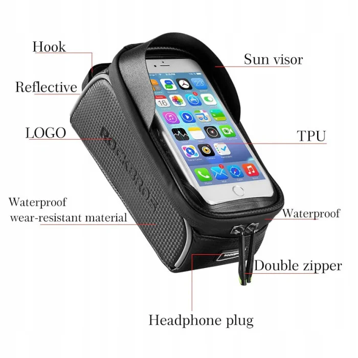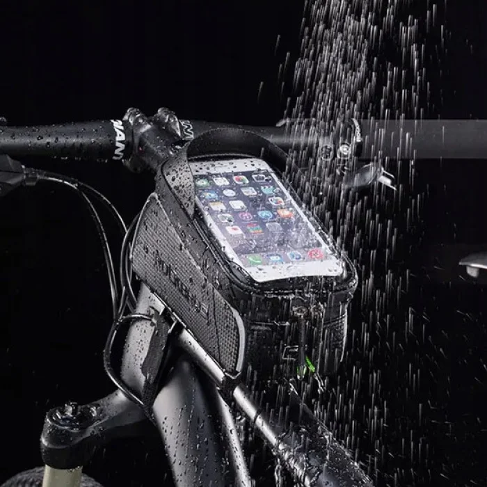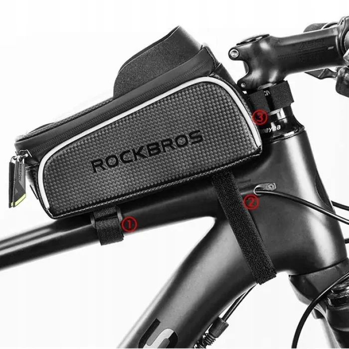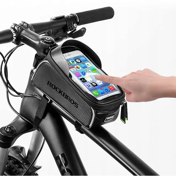 Uchwyt na telefon do roweru Rockbros 017-3BK to uniwersalny i wygodny sposób na przechowywanie rzeczy osobistych i telefonu podczas jazdy rowerem.