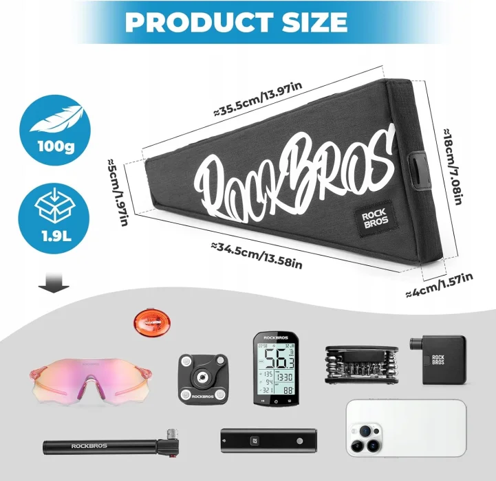 Torba Rowerowa na Ramę 1,9L Trójkątna Czarna Paski na Rzep