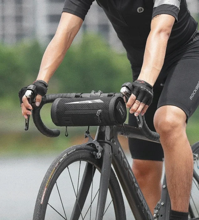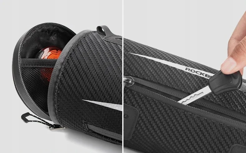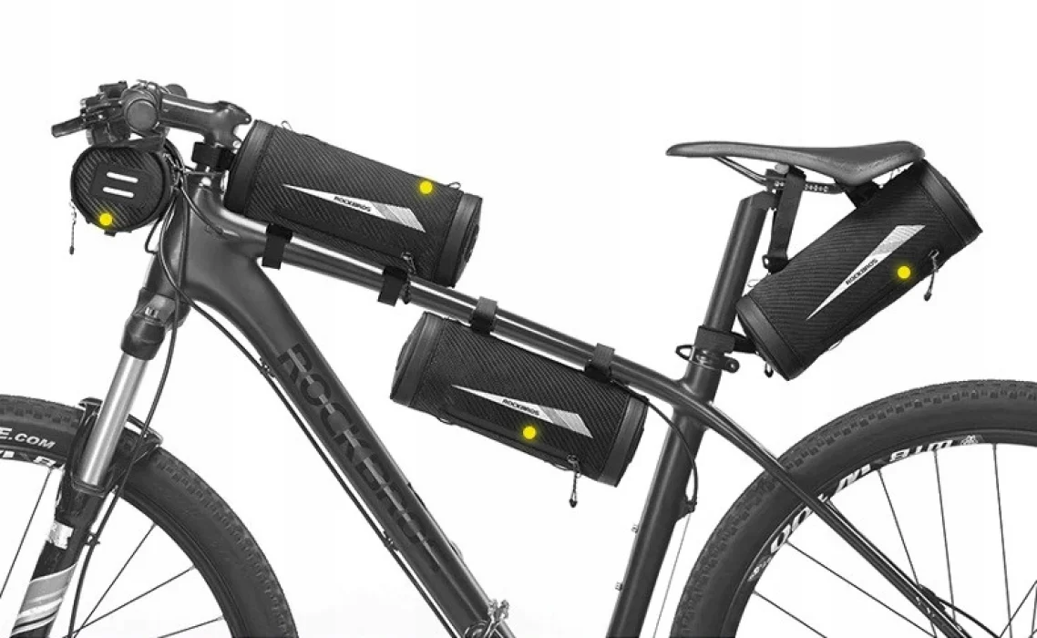 Multifunkcyjna sakwa rowerowa marki ROCKBROS, którą można zamocować zarówno na kierownicy, jak i na ramie, czy też pod siodłem.