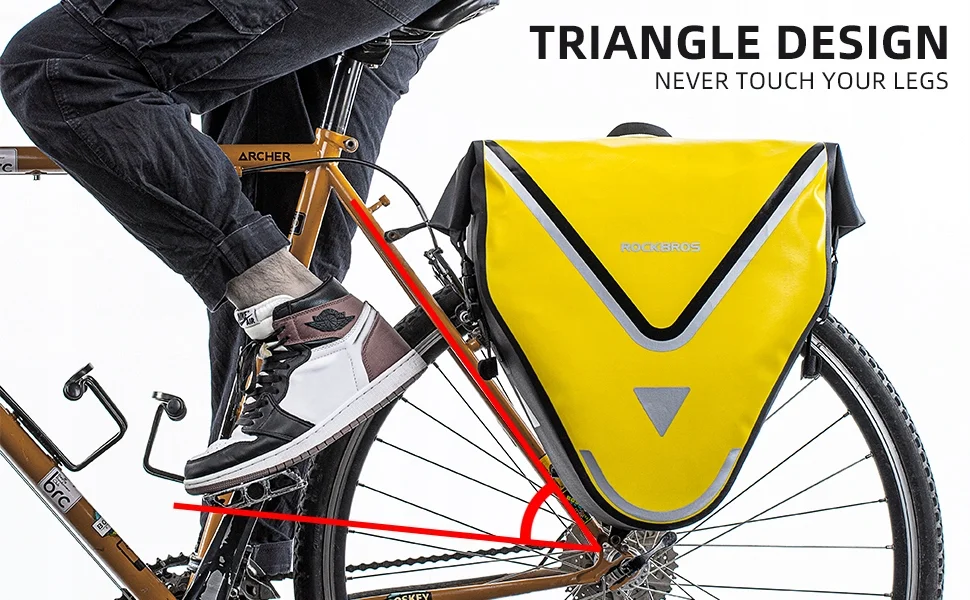 Trójkątna konstrukcja jest stabilna i skutecznie zapobiega ocieraniu się torby o nogi podczas jazdy.
