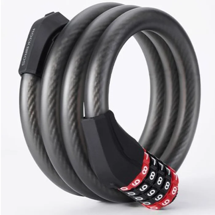 Antykradzieżowe zapięcie do roweru ROCKBROS odstrasza potencjalnego złodzieja. To wytrzymała linka spiralna posiadająca trwałe zapięcie na szyfr.