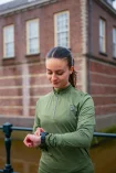 Dodatkowym atutem są otwory na kciuki, które zapewniają komfort oraz ciepło. Z przodu krótki zamek błyskawiczny z elementem chroniącym szyję, który ułatwia ubranie koszulki. Bezpieczeństwo podczas biegania jest bardzo ważne. Specjalne odblaskowe elementy umieszczone na koszulce sprawiają, że będziesz widoczna nawet w ciemności.