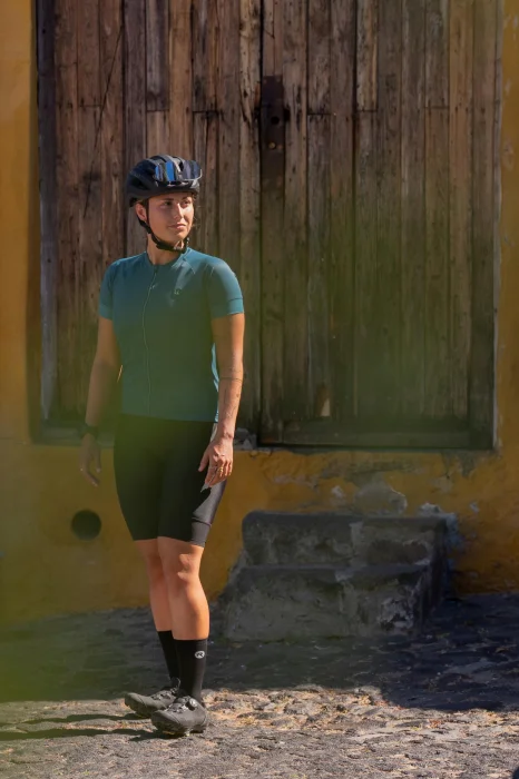 Koszulka Modesta jest bardzo przyjemna w dotyku i delikatna dla ciała. Zastosowany na całej długości zamek Vislon z automatycznym stoperem zapobiega rozsuwaniu się koszulki podczas jazdy.