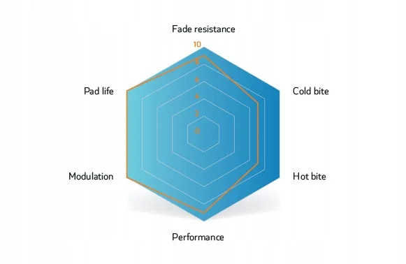 Opracowany dla bezkompromisowych entuzjastów z myślą o wydajności. Półmetaliczna mieszanka i precyzyjnie dostrojony współczynnik tarcia zapewniają najlepszą kontrolę hamowania, długą żywotność klocków i stabilne osiągi we wszystkich zakresach temperatur, na suchej i mokrej nawierzchni.