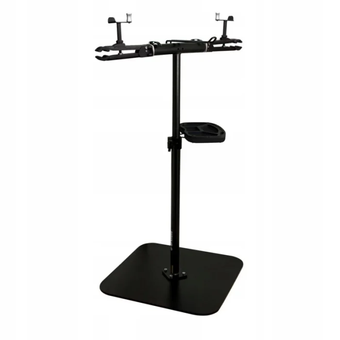 - Stojak serwisowy do roweru z podstawą płytową i dwoma szczękami przeznaczony dla serwisów i bardziej wymagających użytkowników