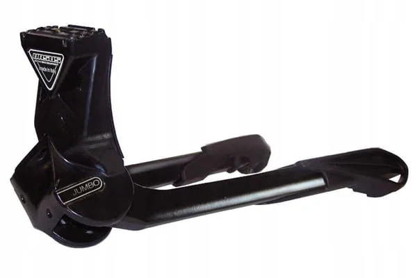 JUMBO to klasyczna, dwunożna podpórka wykonana w 100% z aluminium. Jej unikalna konstrukcja w połączeniu z szerokim, 30-centymetrowym rozstawem sprawia, że jest to niezwykle wytrzymała podpórka. Z łatwością wytrzymuje obciążenie do 100 kg, dzięki czemu idealnie nadaje się do rowerów elektrycznych, rowerów rodzinnych, rowerów z torbami lub innymi akcesoriami, takimi jak foteliki bezpieczeństwa, a także do rowerów o dużej wytrzymałości (pocztowych lub kurierskich).