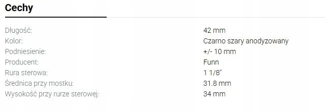 Jest dostępny dla kierownic 31,8 i 35 mm oraz w długościach 35 mm, 42 mm i 50 mm.