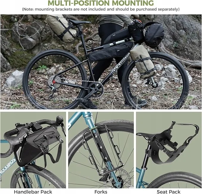 Elastyczny montaż na kierownicy, na widelcu lub na bagażniku (uchwyty montażowe dostępne oddzielnie), pasują do indywidualnego planowania wycieczek
