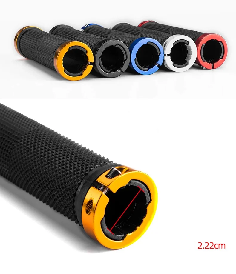 Anatomicznie dopasowane chwyty kierownicy wykonane z gumy dla uzyskania unikalnego uczucia miękkości, przy jednoczesnym utrzymaniu trwałości. Unikalny wzór powierzchni chwytów oraz zapewniają wygodną pozycję, absorpcję wstrząsów oraz pewność chwytu. Wyposażone w aluminiowe skręcane klamry oraz korki.