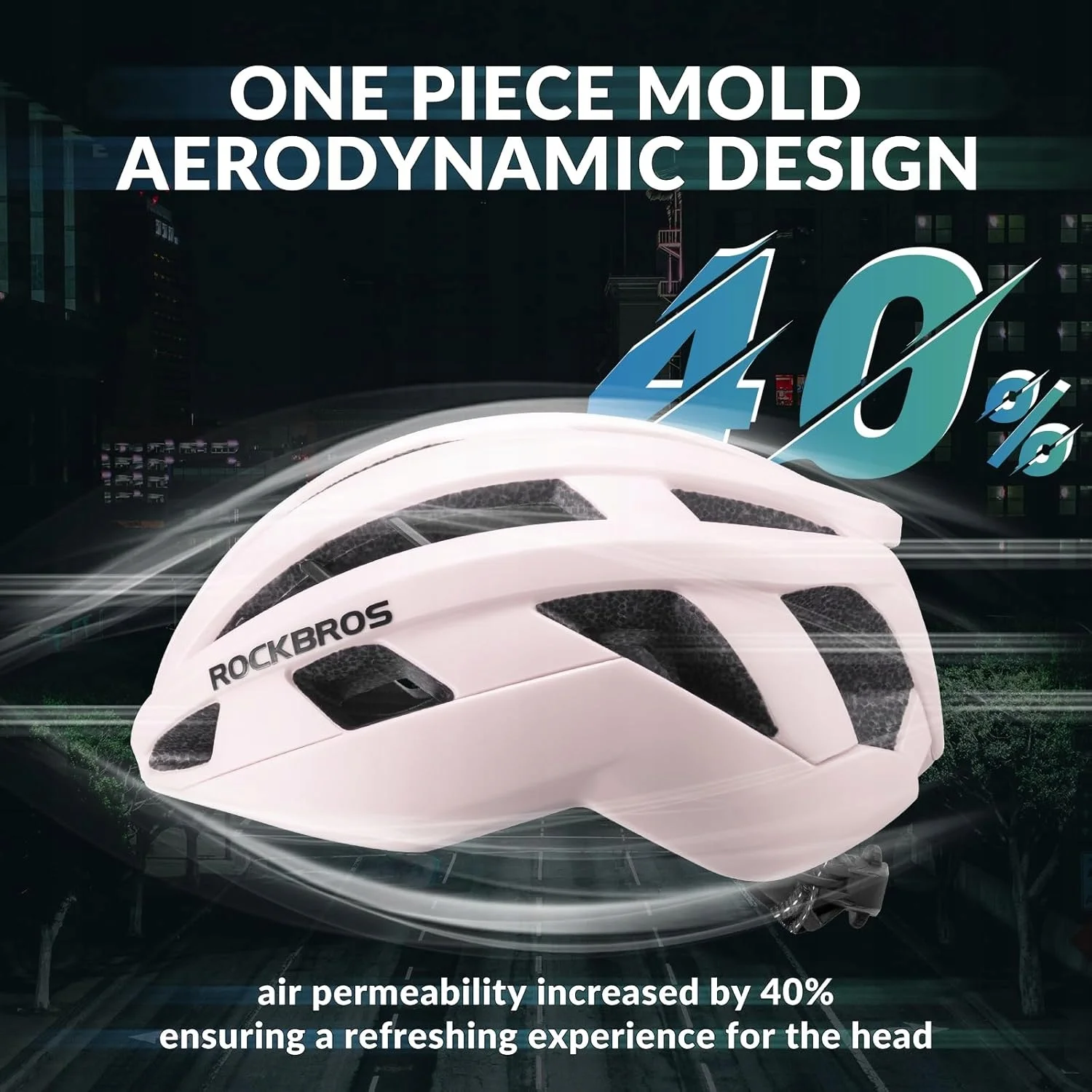 Kask miejski jest uformowany w jednym kawałku i ma opływowy kształt, który zmniejsza opór wiatru. Kask rowerowy jest oddychający, dzięki czemu ciepło jest szybko odprowadzane z głowy.