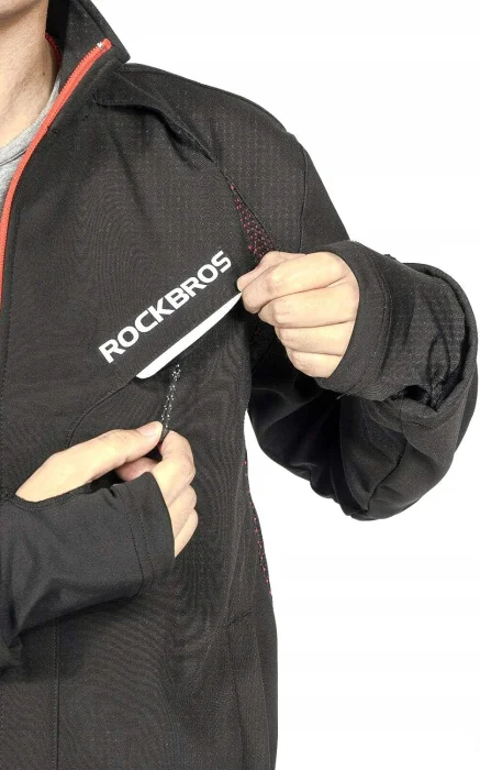 ROCKBROS Kurtka Rowerowa Kurtka Rowerowa Męska Kurtka Zimowa Kurtka Polarowa Wiatrówka Wodoodporna Wyściełana 3D Czarna