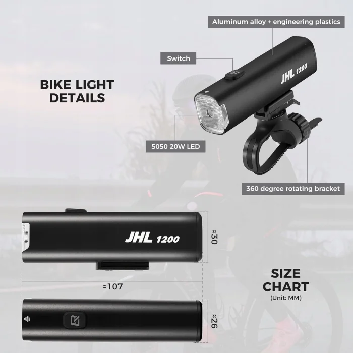 Rockbros lampka rowerowa przednia 1200LM czarn