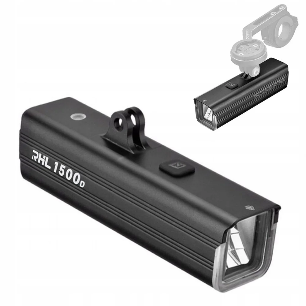 RockBros RHL 1500D | Mocna Lampka Rowerowa Przednia | 1500lm IPX6 USB-C | pod Licznik GoPro Garmin