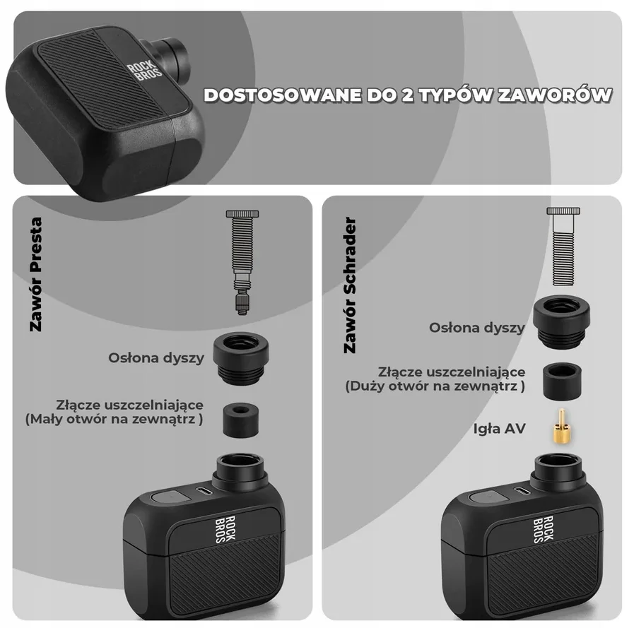 ROCKBROS Minipompa Elektryczna AS110 Przenośna Auto-Wyłączanie 120 PSI Presta & Schrader