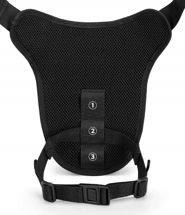 Albo jak tradycyjną „nerkę” przez ramię, albo można ją zamocować w pasie i zaczepić o udo dla jeszcze lepszej stabilizacji. Regulowany pas oraz dołączony dodatkowy pas mocujący na udo umożliwia dostosowanie torby do własnych potrzeb niezależnie od tego czy torba będzie używana podczas jazdy motocyklem czy przy pieszej wędrówce.
