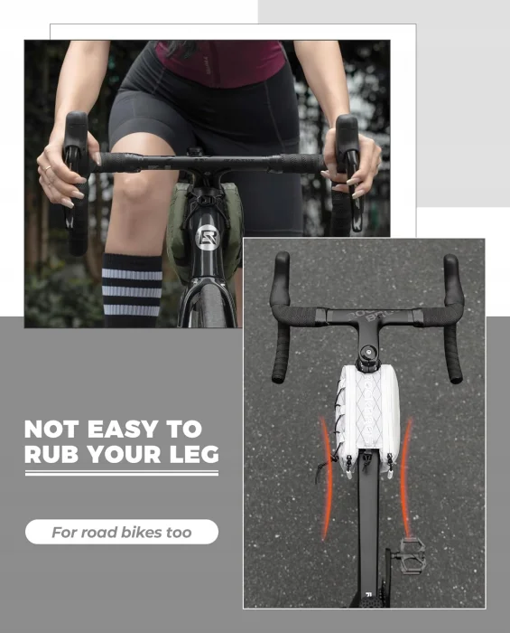 Torba rowerowa ROCKBROS z przodu została zaprojektowana tak, aby idealnie przylegała do ramy roweru, zapewniając komfort i wygodę. Ciesz się nieprzerwaną jazdą.