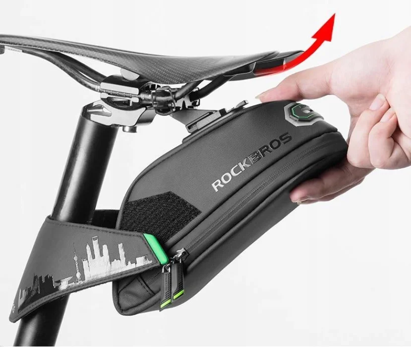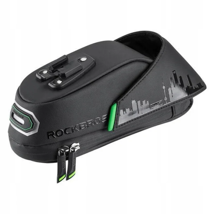 Sakwa rowerowa marki Rockbros jest torbą mocowaną pod siodłem. Jest tak zaprojektowana, aby w uproszczony sposób przewozić sprzęt bez potrzeby montażu tylnego bagażnika. Wykonana z odpornych i trwałych materiałów. Jest lekka, wodoodporna oraz łatwa w montażu. Ulepszony system montażu w połączeniu z paskami zaciskowymi zmniejsza efekt wahadła związany z dużym ładunkiem i zapewnia komfortową jazdę przez wiele kilometrów. Łatwy dostęp do wodoodpornego wnętrza pozwala, aby zawartość pozostała całkowicie sucha.