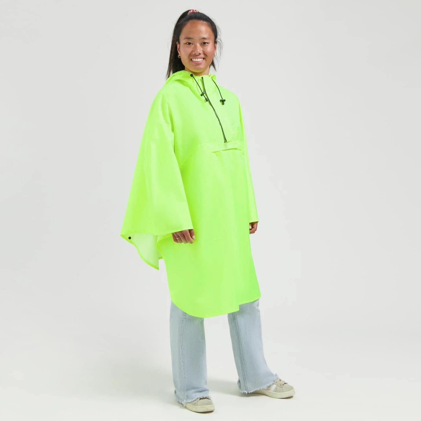 Poncho można łatwo złożyć do zintegrowanej przedniej kieszeni, dzięki czemu jest kompaktowe i łatwe do przenoszenia.