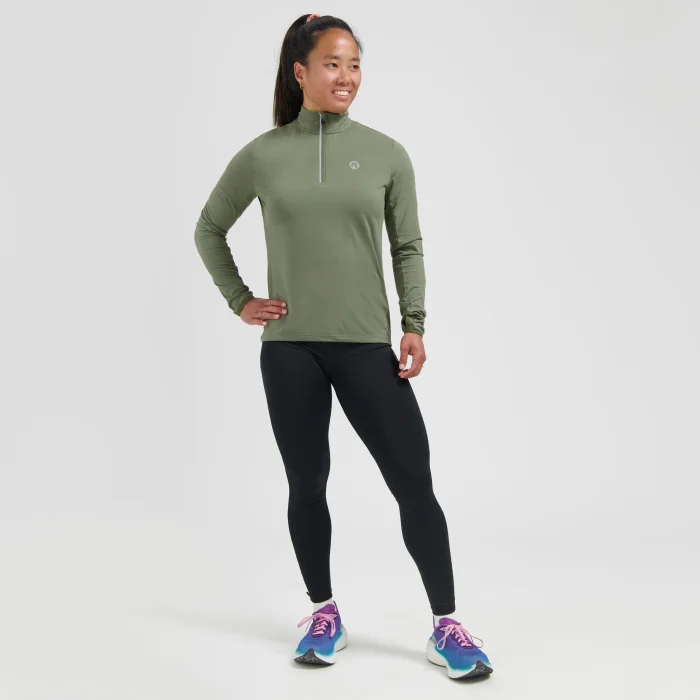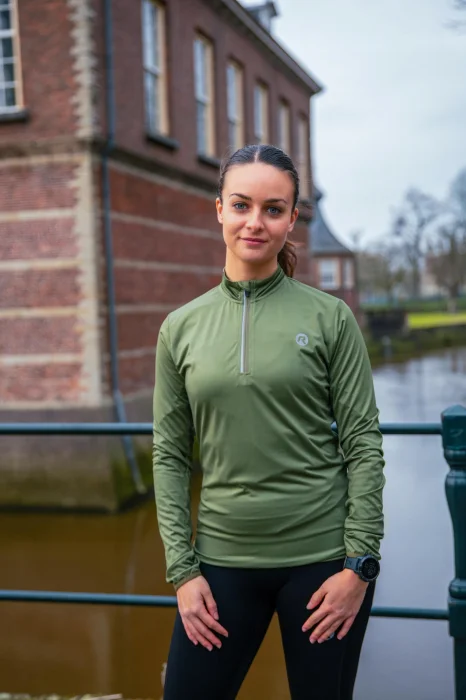 Dodatkowym atutem są otwory na kciuki, które zapewniają komfort oraz ciepło. Z przodu krótki zamek błyskawiczny z elementem chroniącym szyję, który ułatwia ubranie koszulki. Bezpieczeństwo podczas biegania jest bardzo ważne. Specjalne odblaskowe elementy umieszczone na koszulce sprawiają, że będziesz widoczna nawet w ciemności.