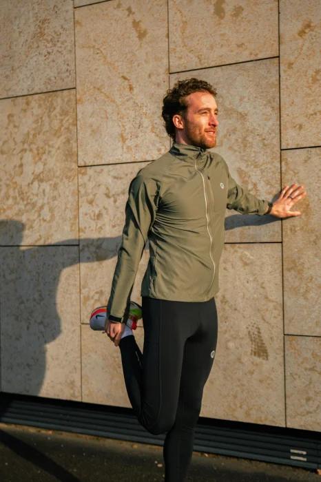 Kieszeń na piersi zapinana na zamek pomieści niezbędne drobiazgi, takie jak klucze czy telefon. Odblaskowe elementy poprawiają widoczność w warunkach słabego oświetlenia, co jest idealne podczas biegania wczesnym rankiem lub wieczorem.
