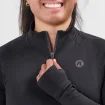 Krótki zamek z przodu umożliwia regulację, a otwory na palce stabilizują rękawy i chronią dłonie przed zimnem.