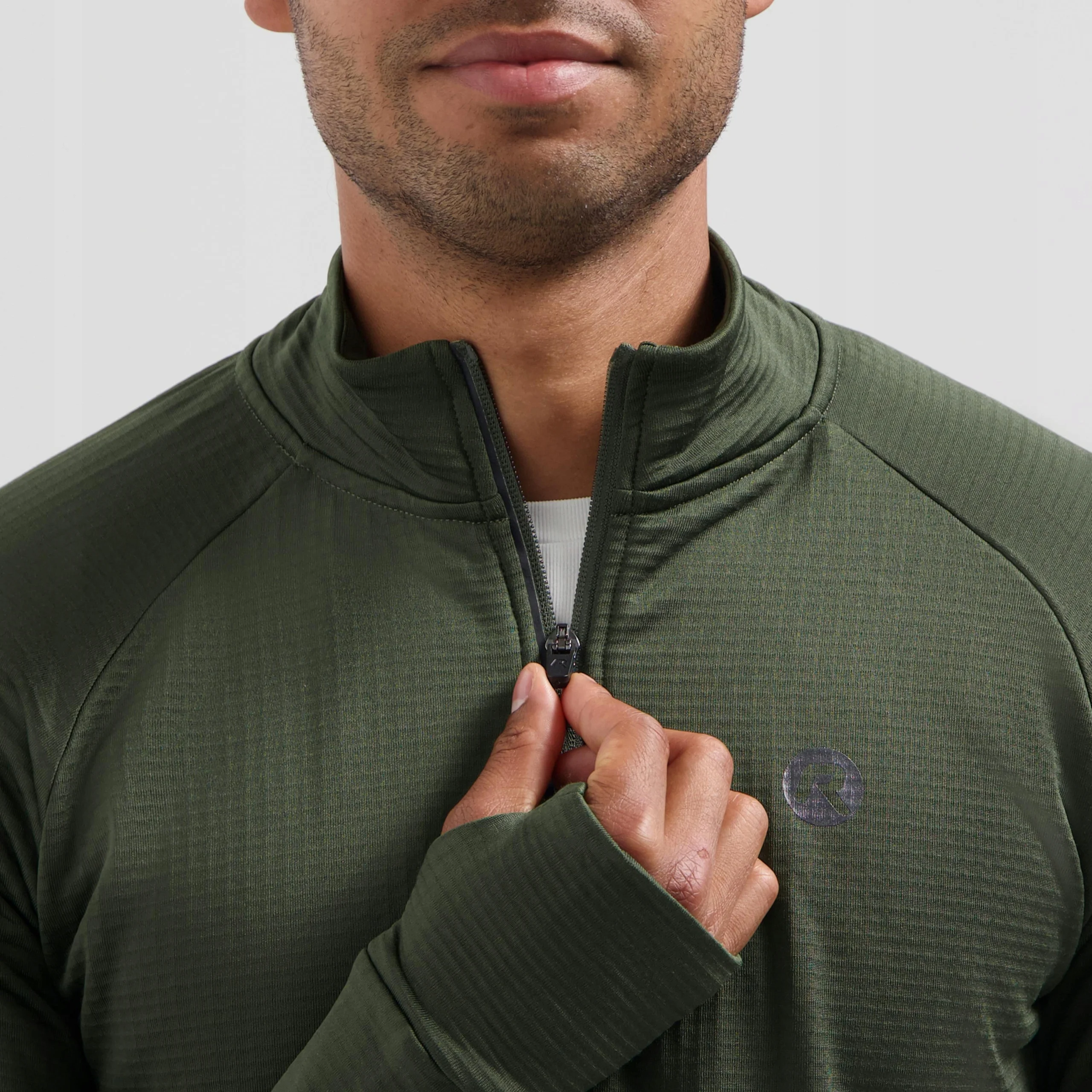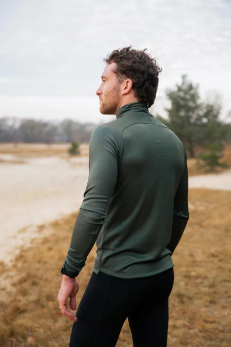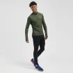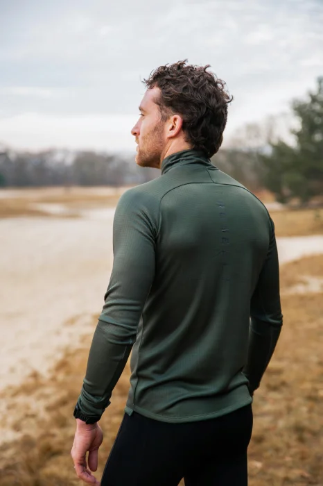 Krótki zamek pozwala regulować temperaturę podczas wysiłku, a otwory na kciuki utrzymują rękawy na miejscu i chronią przed zimnem. Odblaskowe detale dbają o Twoje bezpieczeństwo podczas biegu w ciemności.