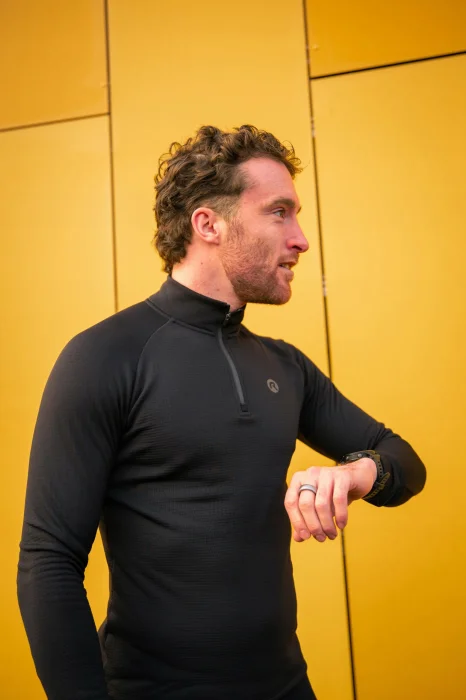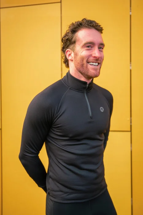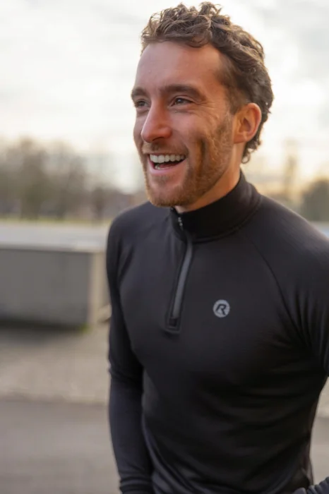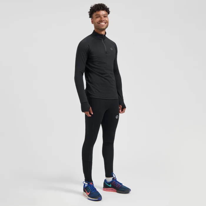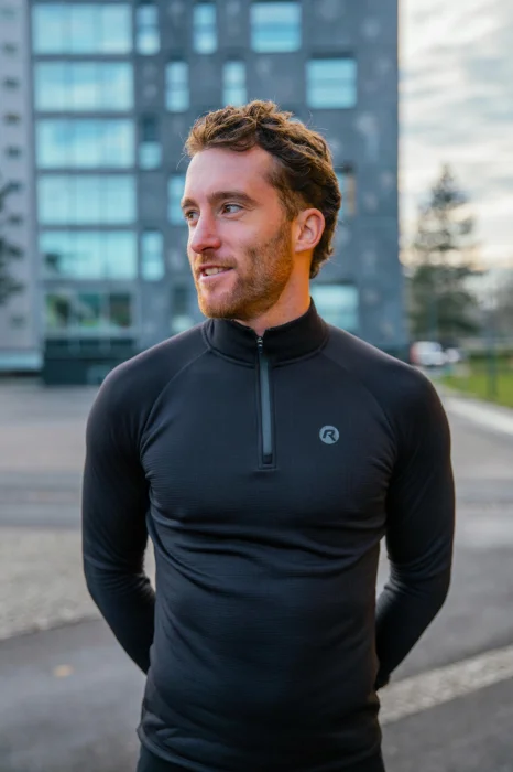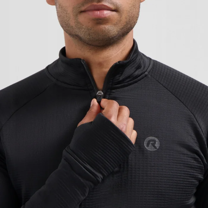Krótki zamek pozwala regulować temperaturę podczas wysiłku, a otwory na kciuki utrzymują rękawy na miejscu i chronią przed zimnem. Odblaskowe detale dbają o Twoje bezpieczeństwo podczas biegu w ciemności.