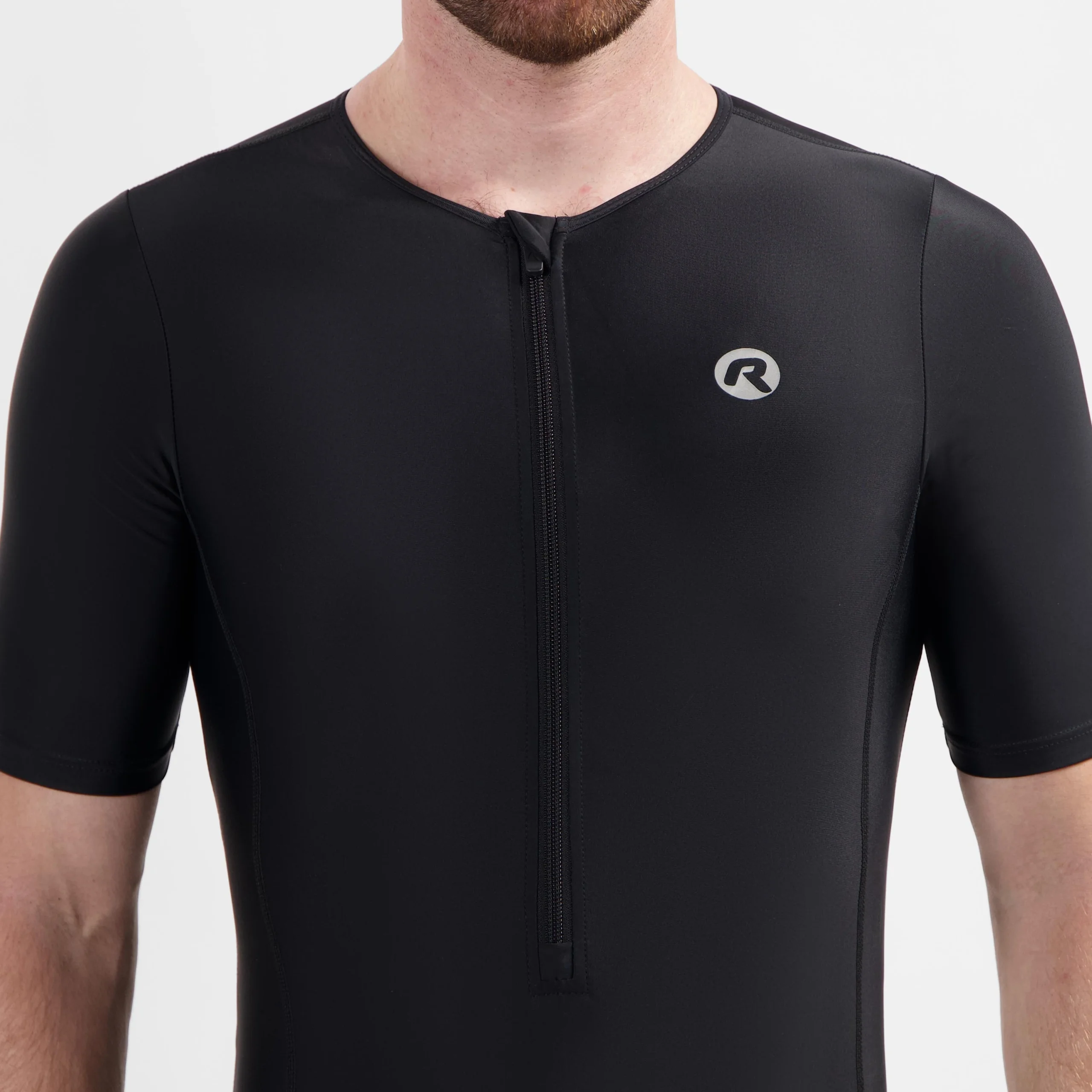 Kombinezon ma wygodny, zamek błyskawiczny, a odblaskowe elementy sprawiają, że jesteś widoczny nawet w ciemności. Dzięki dwóm praktycznym kieszeniom z tyłu masz wystarczająco dużo miejsca na najpotrzebniejsze rzeczy. Silikonowy ściągacz na nogawce sprawia, że ​​kombinezon wygodnie utrzymuje się na swoim miejscu.