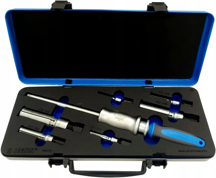 - Zestaw ściągacza zawiera 6 różnych ramion do łożysk wewnętrznych w rozmiarach : 7-9, 10-12, 12-15, 17-22, 22-28, 30-36.