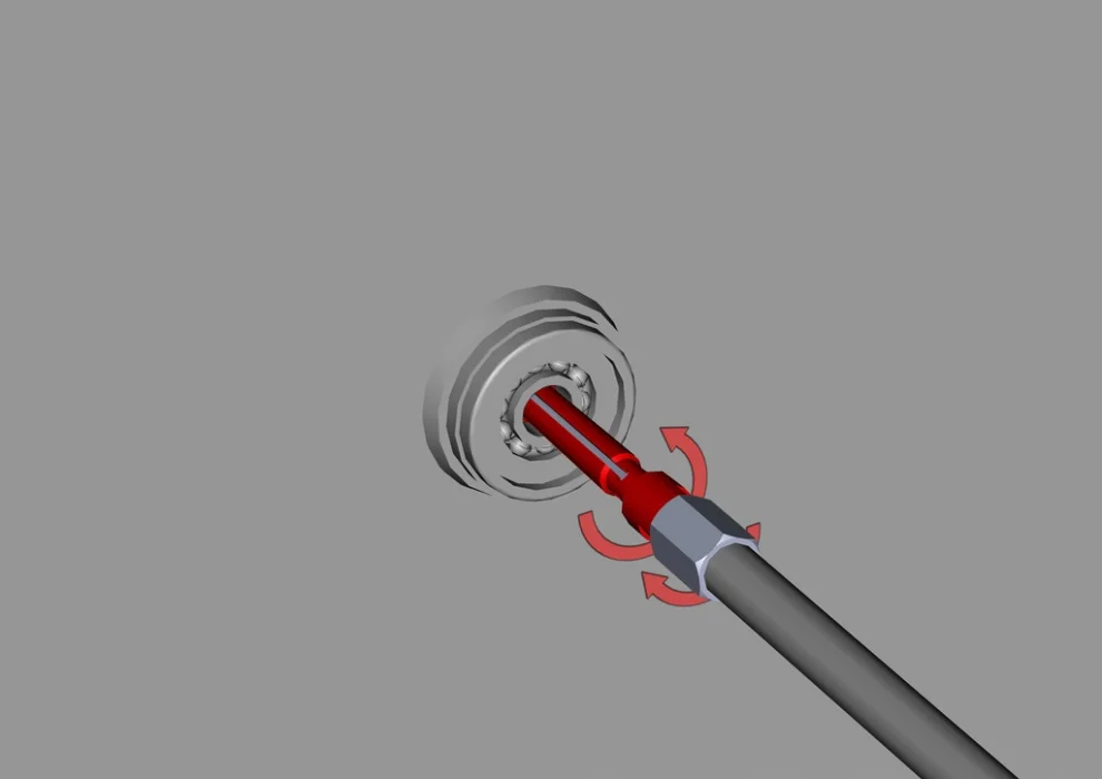 - Wprowadzić ściągacz poprzez otwór łożyska, które będzie demontowane. Skręcaj trzpień do momentu ustalenia ramion ściągacza w otworze łożyska.