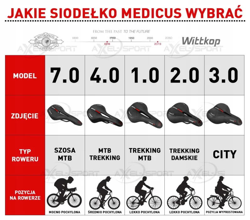 Żelowe siodełko marki Wittkop, model TWIN Medicus 3.0. Siodełko niemieckiego producenta zostało opracowane przez słynnego chirurga ortopedę dr Torsten Werle. Siodło stworzone z myślą o wygodzie i nowoczesnym designie. Twórca na podstawie analizy ludzkiego ciała w ruchu rowerzysty zaprojektował siodło dzieląc na pięć stref, które mają za zadanie zapewnić wysoki komfort podczas dynamicznej jazdy. To siodełko świetnie tłumi drgania.